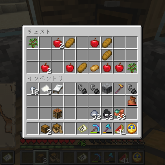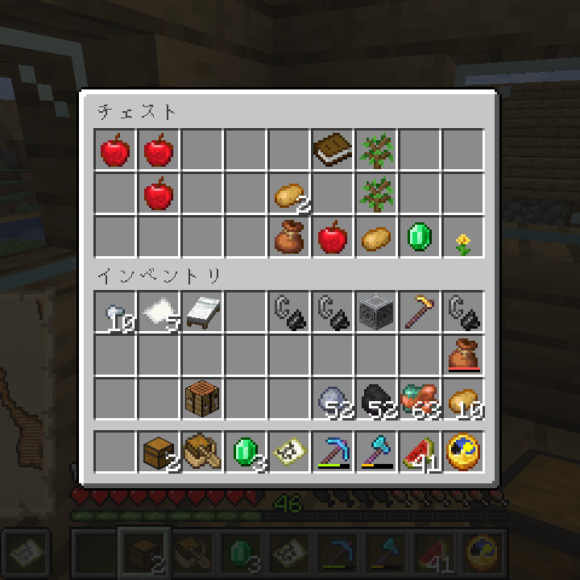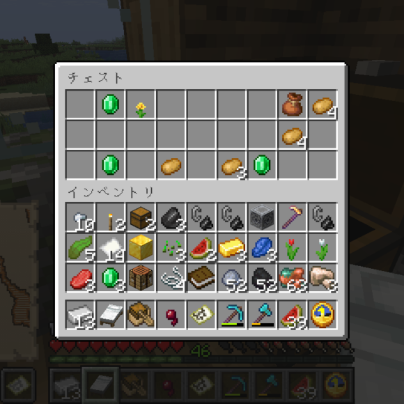 こんな感じのアイテムをゲットできることができました、そこには念願のじゃがいももあり、これkらのマイクラ生活を充実させることになるかもしれません。