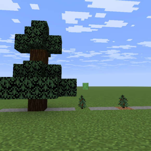 トウヒは高さ制限をすることで収穫を行いやすくなるので制限しますが、ただし制限すると苗の回収がマイナスになってしまうので、栽培するときは注意が必要、尚、トウヒは2x2で巨木化して苗の回収もプラスになります。
